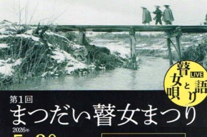 22 4月 2026 「第1回 まつだい瞽女まつり」開催のお知らせ 吉田 | 東頸城郡松代町(現十日町市)はかつて高田瞽女、長岡瞽女がそれぞれ活動していたとい … Continued READ MORE