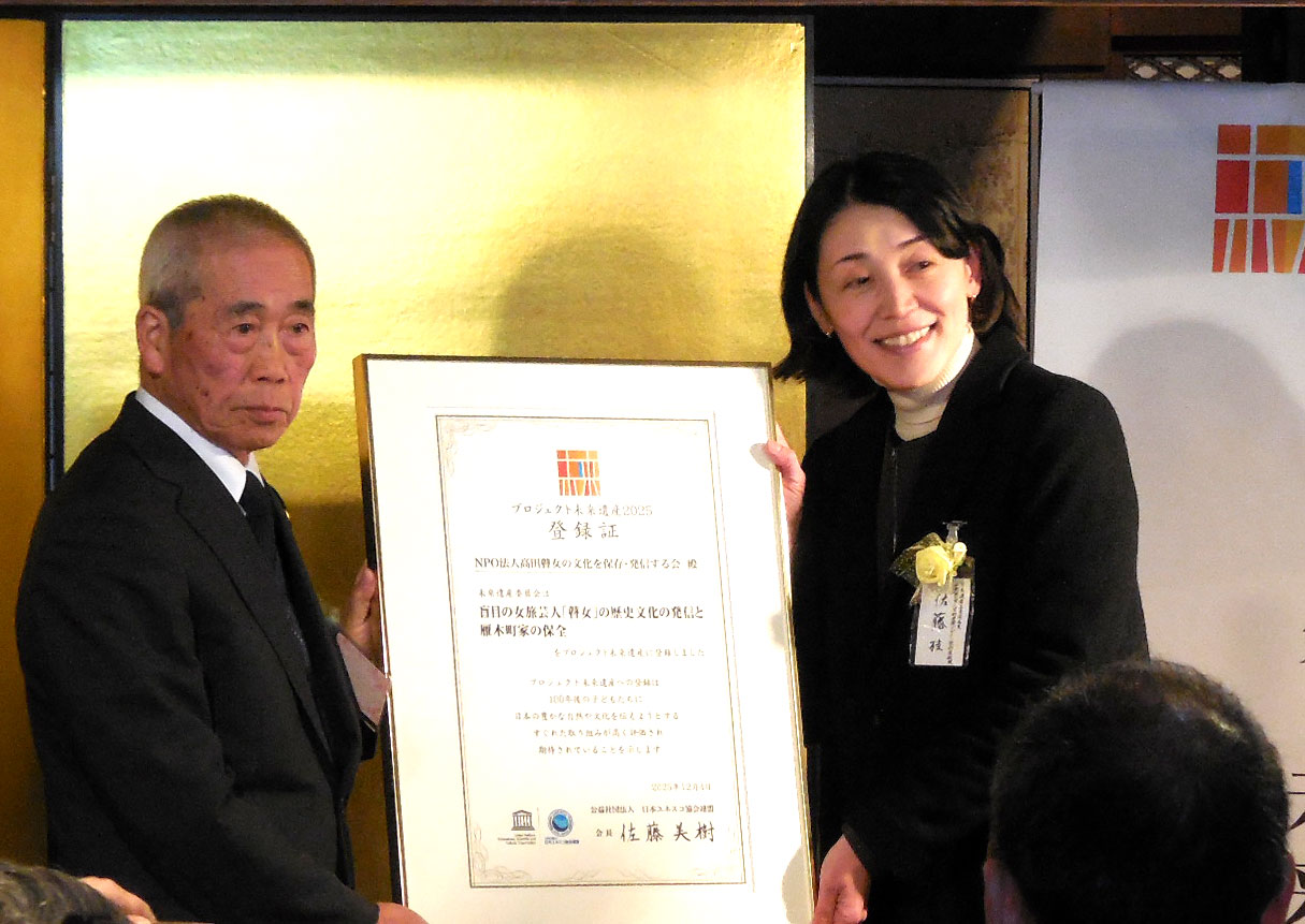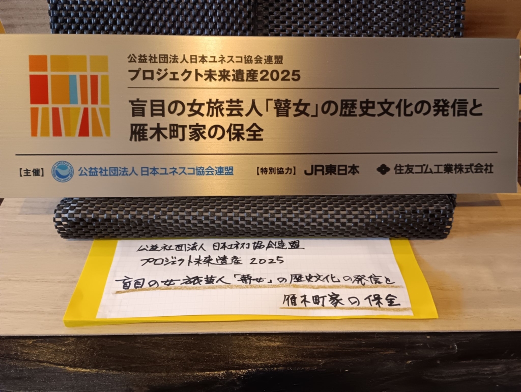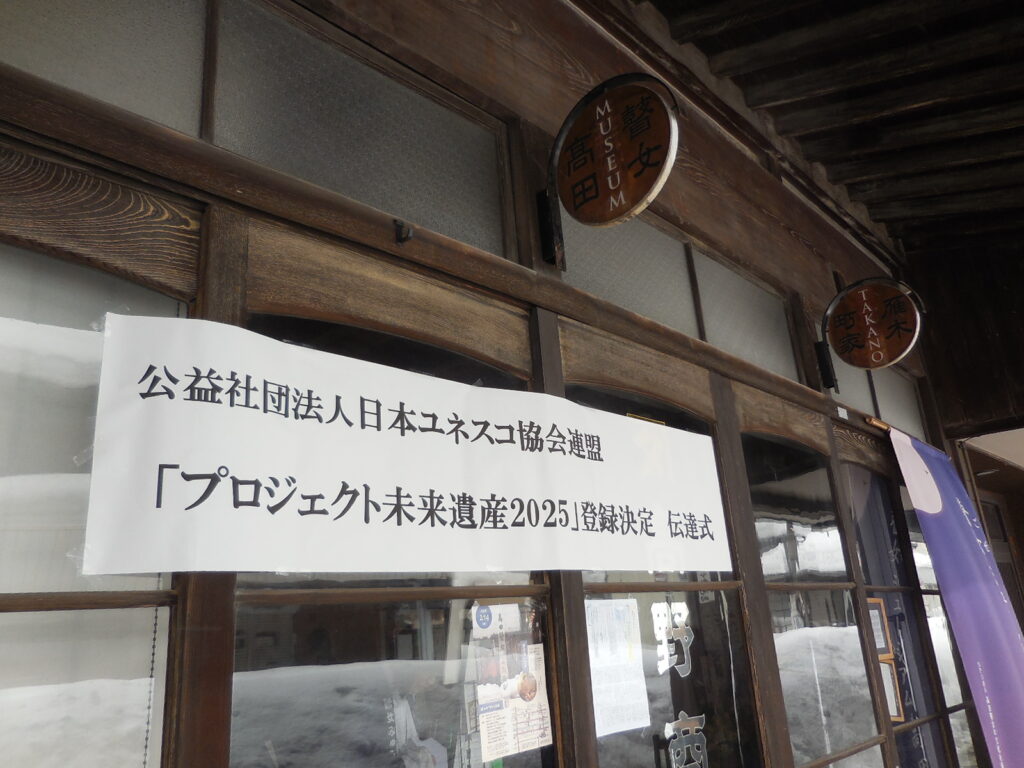 昨年12月、(公社)日本ユネスコ協会連盟「プロジェクト未来遺産2025」に当会の活動が登録されたとお知らせしましたが、この30日に瞽女ミュージアム高田において登録証の伝達式が開催されました。