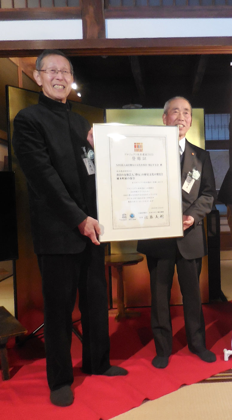 伝達式は上越市長をはじめ行政教育機関、県議、近隣町内会長、文化活動関係者の皆様、そして初代会長 故・市川信夫氏御夫人などをお招きし、日本ユネスコ協会よりプロジェクト概要や選考理由についての説明・登録証授与、来賓の方からご祝辞をいただき、和やかに流れていきました。
