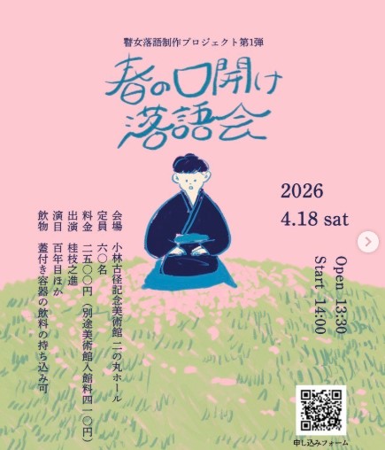 観桜会期間中の4月18日に小林古径記念美術館・二の丸ホールでプロジェクト第1弾の落語会を開催いたします。