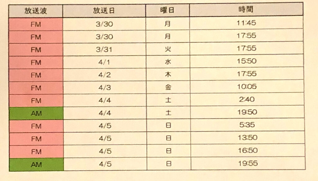 FM 3月29日 (日) 13:50 ~ 13:55