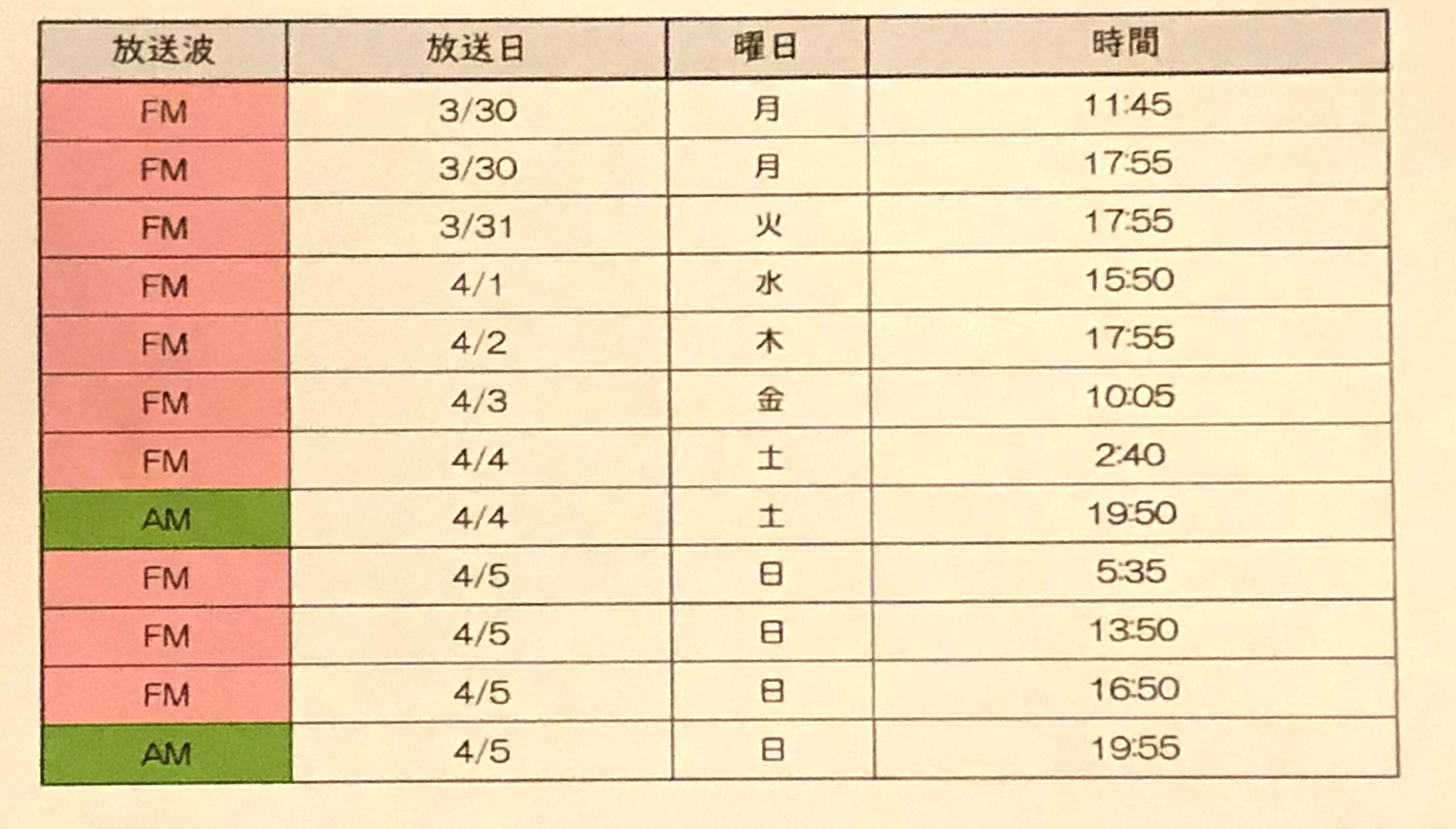 FM 3月28日 (土) 11:50 ~ 11:55